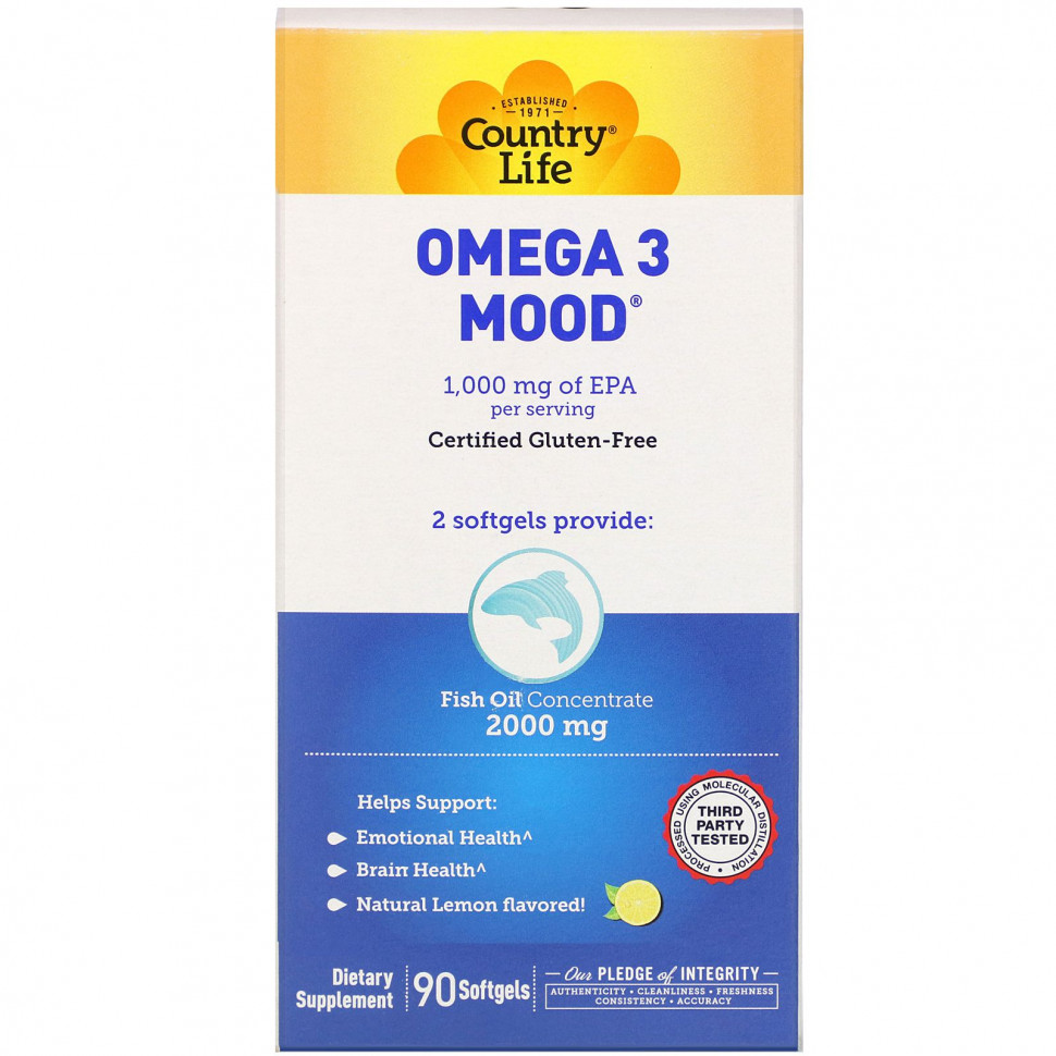 Omega 3 Mood научно разработана для поддержания эмоционального здоровья, здоровья мозга и настроения. Это продукт с самым высоким содержанием ЭПК (эйкозапентаеновой кислоты), предлагаемый компанией Country Life. Две желатиновые капсулы содержат 2000 мг концентрата рыбьего жира и 1000 мг ЭПК.