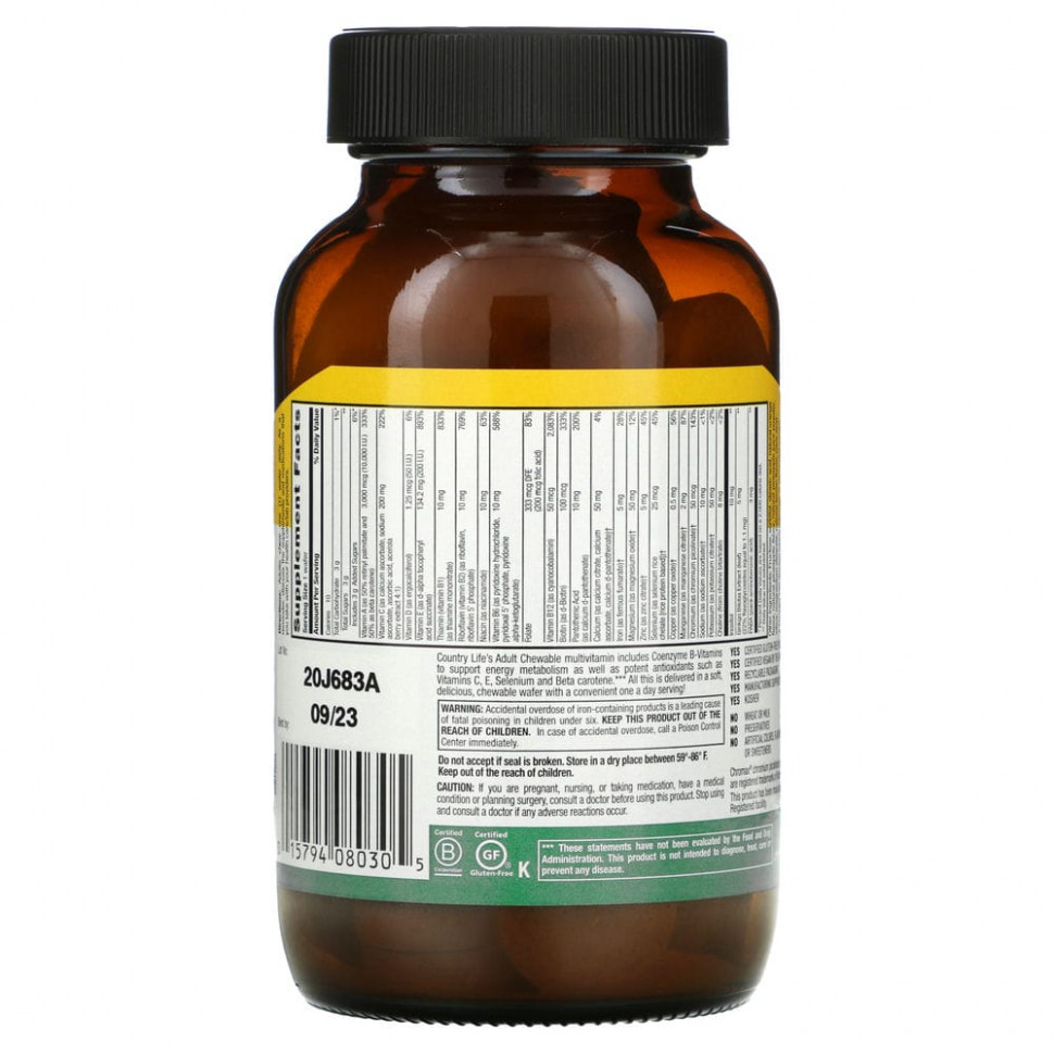 Жевательные мультивитамины для взрослых Country Life содержат кофермент витаминов группы B для поддержки энергетического обмена, а также эффективные антиоксиданты, такие как витамины C и E, селен и бета-каротин. Ежедневная порция в размере одной мягкой жевательной таблетки позволит вам получить все эти полезные ингредиенты в удобной форме!