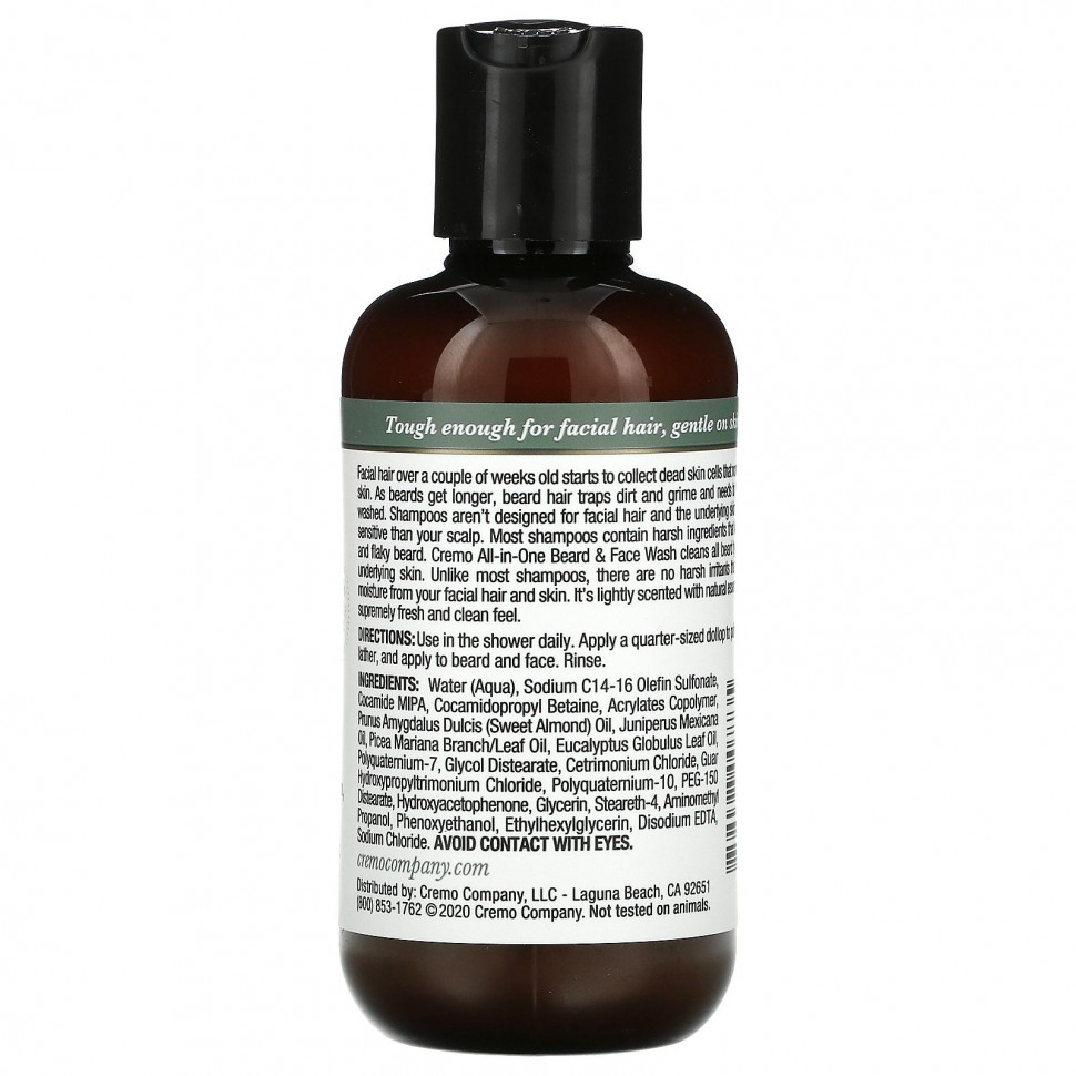 Волосы на лице старше пары недель начинают собирать мертвые клетки кожи, которые обычно отпадают. По мере того, как борода становится длиннее, волосы на бороде задерживают грязь и сажу, и их необходимо регулярно мыть. Шампуни не предназначены для волос на лице и более чувствительной кожи, чем кожа головы. Большинство шампуней содержат агрессивные ингредиенты, из-за которых борода становится сухой и шелушащейся. Борода Cremo All-in-One Beard& Средство для умывания очищает все типы бороды и подлежащую кожу. В отличие от большинства шампуней, здесь нет резких раздражителей, которые отводят влагу от волос на лице и кожи. Он слегка ароматизирован натуральными эфирными маслами для ощущения свежести и чистоты.