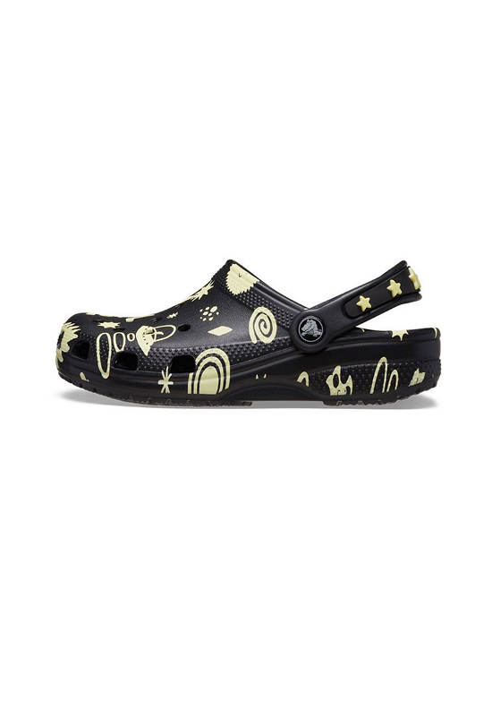 Easy on, easy off! Just like the adult Classic, the CROCS Classic Glow Space Clog Toddler Kids Casual Shoes offer amazing comfort and support, thanks to the light, durable Croslite™ material and molded design. Kids can customize their Crocs™ clog however they like; ventilation holes accommodate Jibbitz™ brand charms.