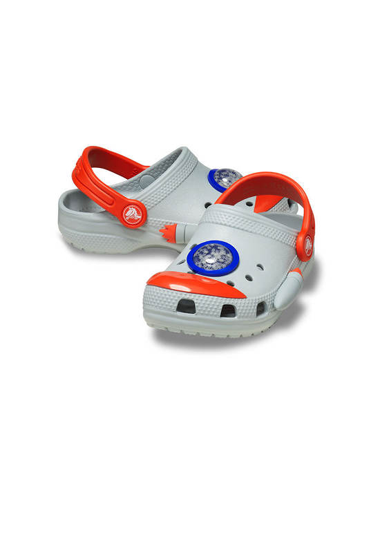 Easy on, easy off! Just like the adult Classic, the CROCS Classic Rocket Ship Clog Toddler Kids Casual Shoes offer amazing comfort and support, thanks to the light, durable Croslite™ material and molded design. Kids can customize their Crocs™ clog however they like; ventilation holes accommodate Jibbitz™ brand charms.
