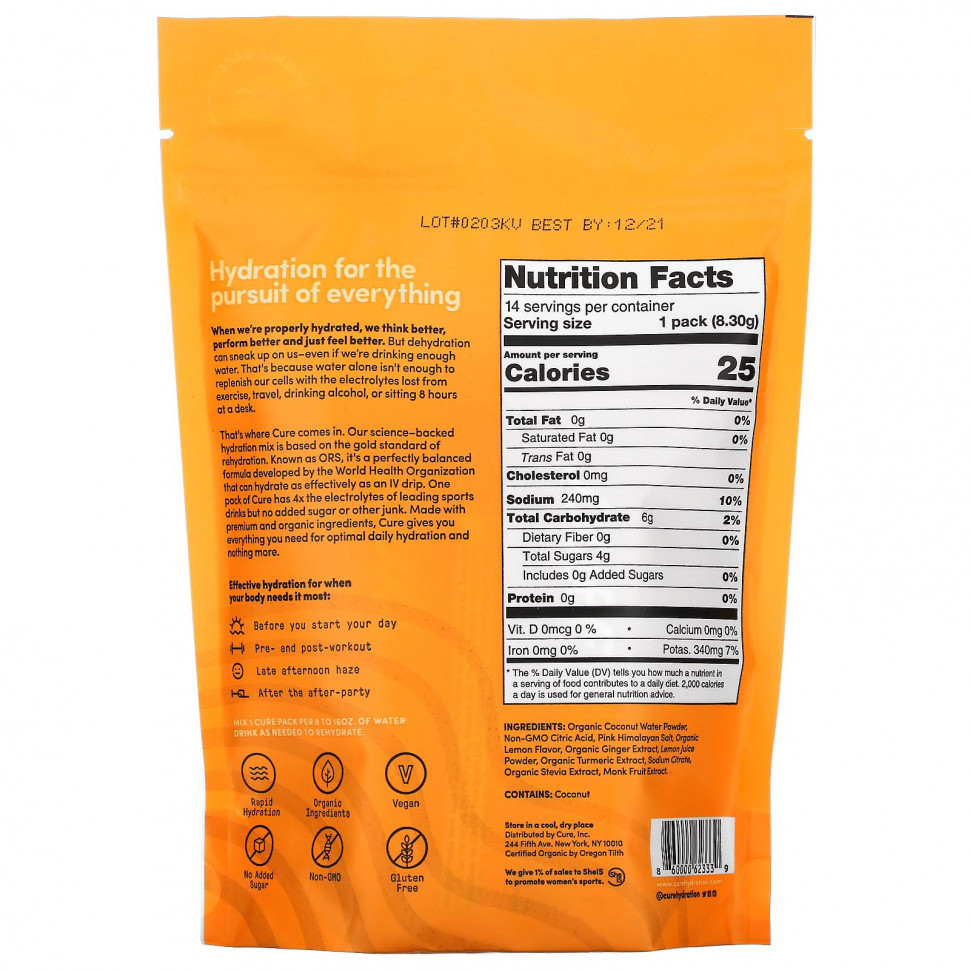Тогда к нам на помощь приходит Cure. Смесь для восполнения потерь жидкости составлена с учетом результатов научных исследований и учитывает все необходимые требования к обеспечению водного баланса организма. Это идеально сбалансированный состав, признанный ВООЗ, восстанавливает потери жидкости так же эффективно, как и вливание при помощи капельницы. Один пакетик Cure содержит в 4 раза больше электролитов, чем другие известные спортивные напитки, кроме того, в нем нет сахара и других неполезных веществ. Сделанный из высококачественных органических ингредиентов Cure обеспечивает необходимый уровень жидкости в организме и не претендует на большее.