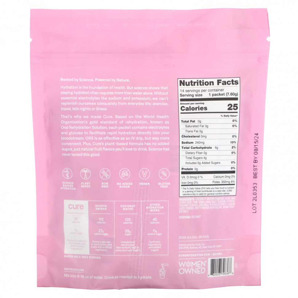 Вот почему мы сделали Cure. В соответствии с золотым стандартом регидратации Всемирной организации здравоохранения, известным как раствор для пероральной регидратации, каждый пакетик содержит электролиты и глюкозу, которые способствуют быстрой гидратации непосредственно в кровоток. ПРС так же эффективен, как капельное вливание, но гораздо удобнее. Кроме того, растительная формула Cure не содержит добавленного сахара, а содержит только натуральные фруктовые вкусы, которые вы полюбите. Наука еще никогда не пробовала такой вкус.