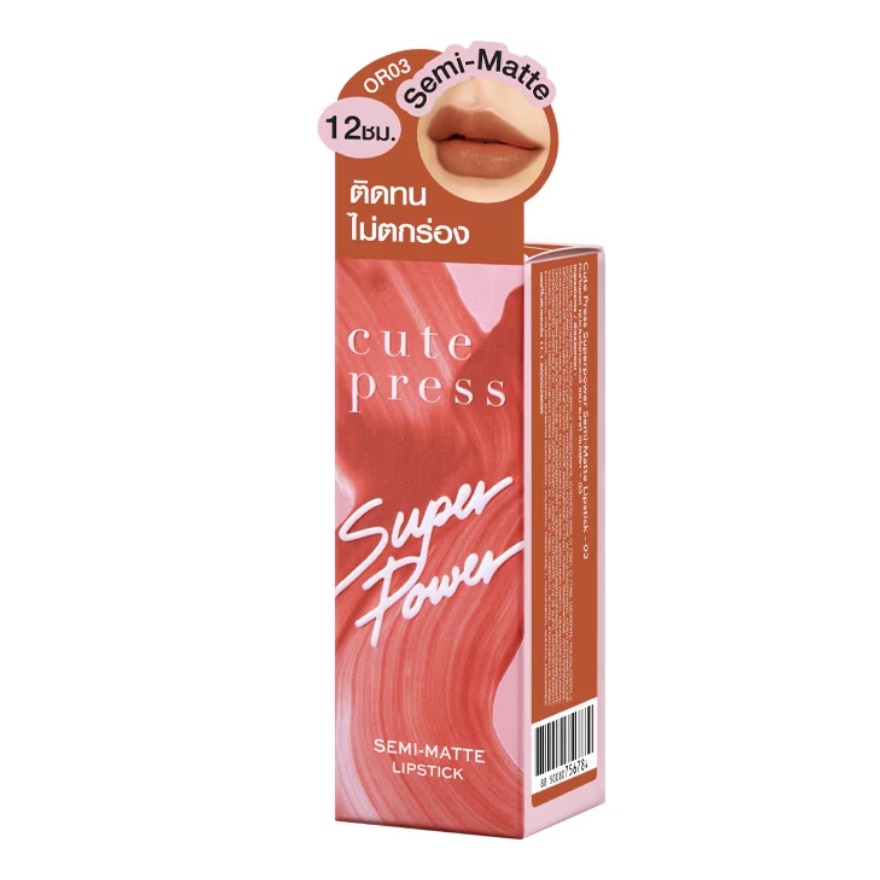 Cute Press Superpower Semi-Matte Lipstick This semi-matte lipstick feels ultralight and smooth on your lips. Cute Press Superpower Semi-Matte Lipstick Its vivid color lasts for 12 hours and it is enriched with Vitamin E and nourishing plant oils to keep your lips Cute Press Superpower Semi-Matte Lipstick Its vivid color lasts for 12 hours and it is enriched with Vitamin E and nourishing plant oils to keep your. lips Semi-Matte Lipstick and it is enriched soft and hydrated for up to 12 hours.