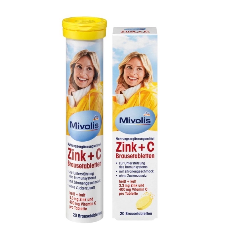 Цинк + Витамин С, шипучие таблетки Mivolis Zink + C Brausetabletten 20 шт.