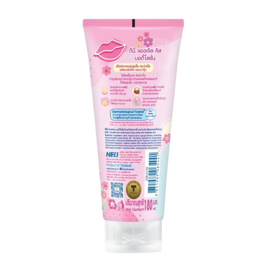 D-nee Angel Kiss Body Lotion for fragrant, soft, moisturized, radiant skin like young skin, fragrant and kissable. Gel lotion, absorbed quickly, gently nourishes the skin with natural extracts. Make the skin moisturized and glowing. Vitamin C from redfruit helps the skin to have an aura, radiant, smooth, and soft. Redfruit extract acts as an anti-oxidant to protect beautiful skin. Vitamin E adds moisture to the skin for long-lasting softness. Free from chemicals that harm the skin 0% alcohol, parabens and dyes.
