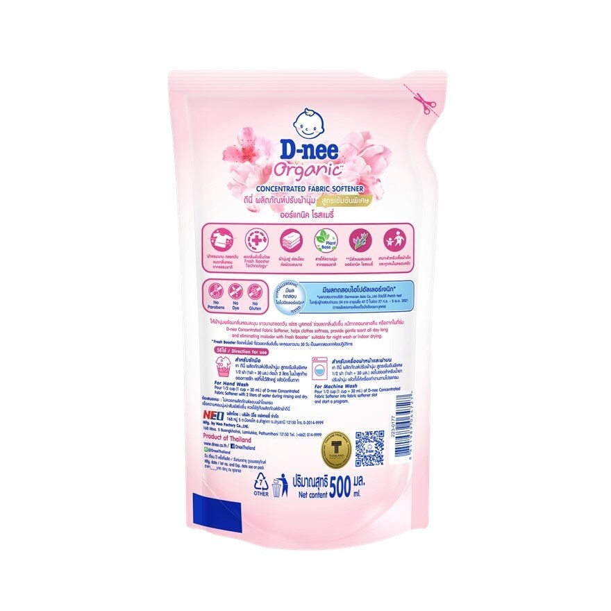 D-Nee Concentrated Fabric Softener Organic Rosemary , helps clothes softness, provide gentle scent all day long and eliminating malodor with Fresh Booster suitable for night wash or indooor drying. — Eliminating malodor and Long lasting 30 Days — Organic Rosemary — Plant Base Quats — Hypoallergenic Tested — NO PARABEN — NO Dye — NO Gluten — Suitable for everyone For Hand Wash Pour 1/2 (1 cup = 30 ml.) of D-nee Concentrated Fabric Softener with 2 liters of water during rinsing and dry. For Machine Wash Pour 1/2 cup (1 cup = 30 ml.) of f D-nee Concentrated Fabric Softener into fabric softener slot and start a program.