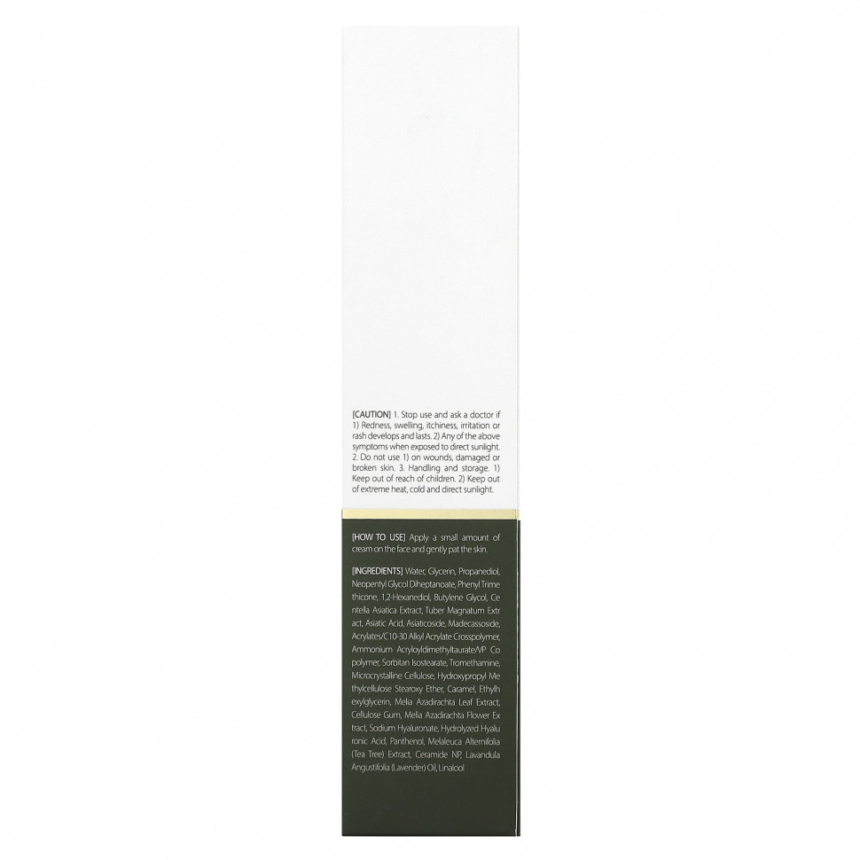 Вода, глицерин, пропандиол, неопентилгликоль дигептаноат, фенилтриметикон, 1,2-гександиол, бутиленгликоль, экстракт готу колы (Centella asiatica), экстракт белого трюфеля (Tuber magnatum), азиатиковая кислота, азиатикозид, мадекассосид, акрилат/c10-30 алкил акрилат кроссполимер, аммоний акрилоилдиметилтаурат/ВП сополимер, сорбитан изостеарат, трометамин, микрокристаллическая целлюлоза, стеароксиэфир гидроксипропилметилцеллюлозы, карамель, этилгексилглицерин, экстракт листьев дерева ним (Melia azadirachta), целлюлозная камедь, экстракт цветков дерева ним (Melia azadirachta), гиалуронат натрия, гидролизованная гиалуроновая кислота, пантенол, экстракт чайного дерева (Melaleuca alternifolia), керамид NP, лавандовое масло (Lavandula angustifolia), линалоол.