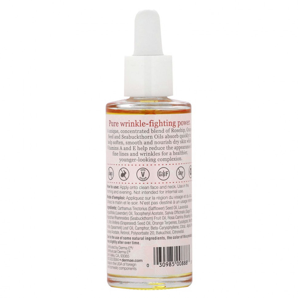 Уникальная концентрированная смесь масел шиповника, виноградных косточек и облепихи быстро впитывается, смягчает, разглаживает и питает сухую кожу, а витамины A и E уменьшают появление мелких и глубоких морщин, придавая лицу более здоровый и молодой вид.