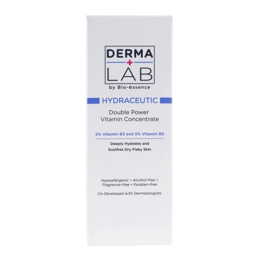 Derma Lab Hydraceutic Double Power Vitamin Concentrate. Deep moisturizing and relieves skin dryness. Rich in Vitamin B3 and B5, it provides rich nutrients for dry sensitive skin. It is clinically proven to reduce flaky skin and skin roughness by 12.3%. Also infused with Hyaluronic Acid and Sodium Hyaluronate which effectively lock in moisture, hence strengthening skin barrier. Restores skin's smoothness, keeping it intensively hydrated and soft. Suitable for eczema-prone skin. With high concentration of multivitamins to provide nutrients for excellent skin renewal. Contains Derma Mimic Complex, this formula promotes skin regeneration and effectively repairs damaged skin.