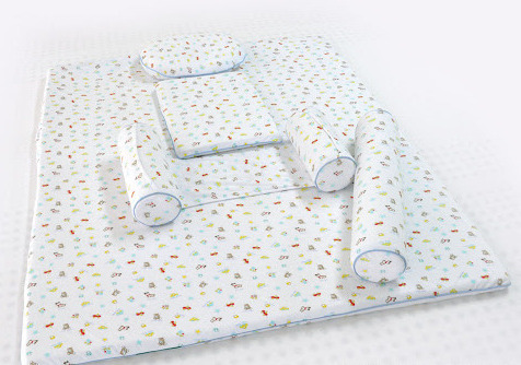 Постельное белье, необходимо применять с самого рождения вашего ребенка. В комплект постельных принадлежностей входят: подушка из латекса, подушка в виде «бублика», латексные валики фиксирующего типа, валик и универсальный матрас размером 120 см 60 см 2.5 см.