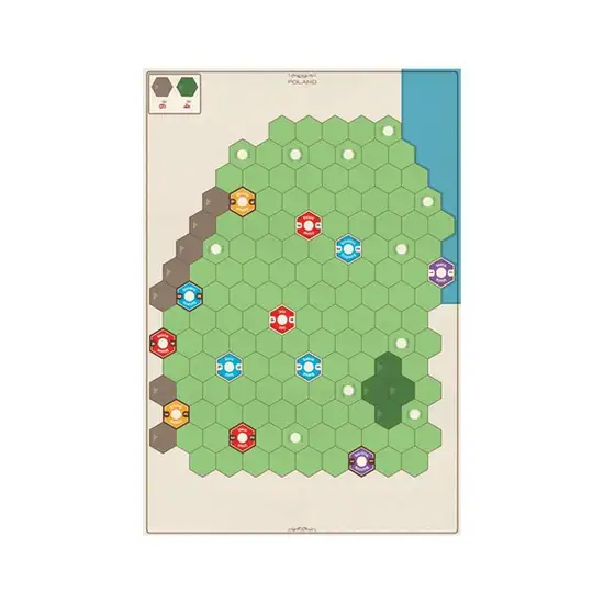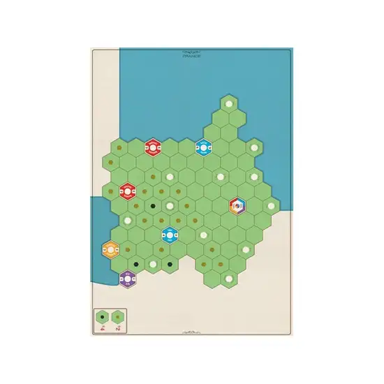 Includes: a 2 sided game board with maps of France and Poland in the new Age of Steam: Deluxe graphic style.