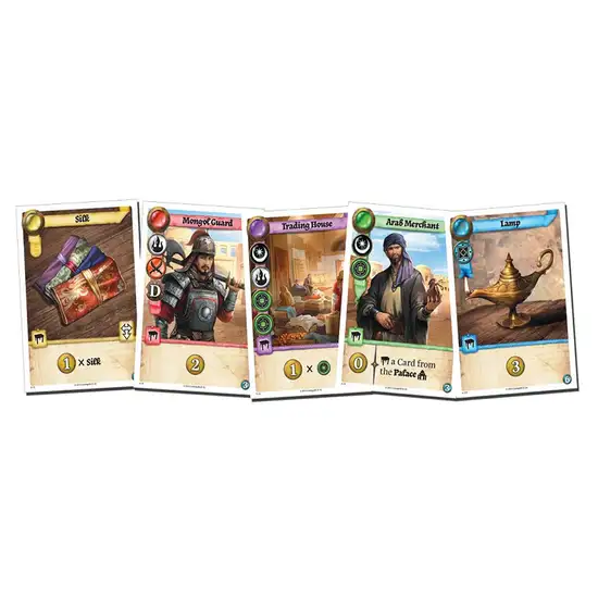 Draft cards from the market to collect goods and valuables, hire guards, assemble caravans, and make contracts with traders. Manage your hand effectively as only certain cards can be played to the table for scoring, while others must be in your hand for optimal end game scoring.