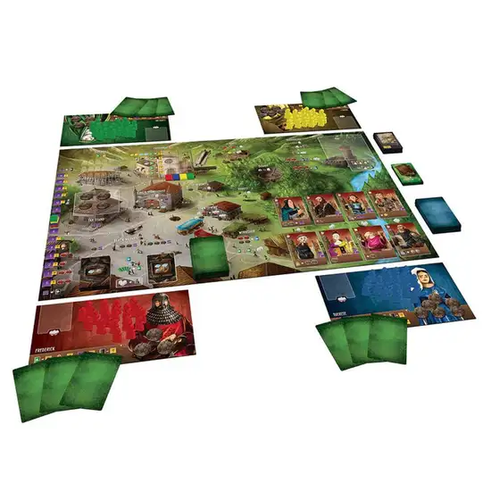 Architects of the West Kingdom is set at the end of the Carolingian Empire, circa 850 AD. As royal architects, players compete to impress their King and maintain their noble status by constructing various landmarks throughout his newly appointed domain. Players need to collect raw materials, hire apprentices, and keep a watchful eye on their workforce. These are treacherous times, and rival architects will stop at nothing to slow your progress. Will you remain virtuous, or be found in the company of thieves and black marketeers?
