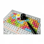 Noch mal so gut! is a roll and write dice game in the Noch mal! family, adding further rules and possibilities of the popular predecessor. New elements include a seventh dice that can be chosen instead of the other ones (and a row and extra scoring for these dice) with new elements included on this dice — like a bomb (cross 4 fields anywhere), a heart (if crossed, it brings bonuses for completed columns), two stars (cross two stars anywhere) etc. Another new element is the rows also being scored besides columns.