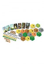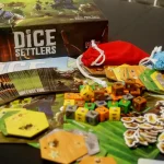 Dice Settlers is a civilization dice game of pool building, resource gathering and area control. Each turn players reach into their bags of dice, roll and choose their own actions: from exploring new lands and building the board, through gathering resources and trading, to developing technologies which offer new abilities, each player chooses their own path to victory.
