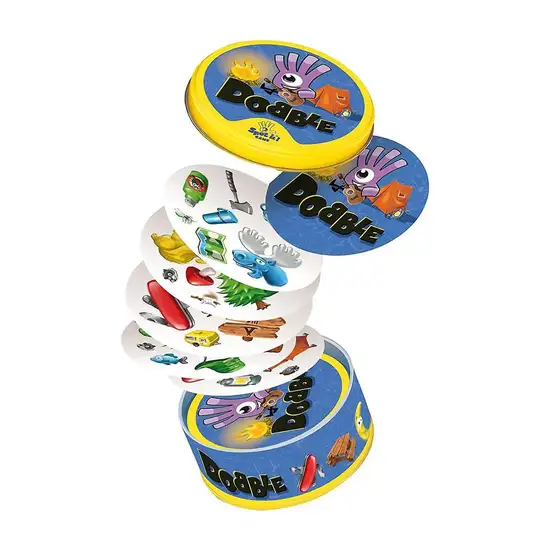 Test your observational skills and hone your reflexes with the award- winning gameplay of Dobble, a game of lightning-fast choices for a group of two to eight players. With multiple awards and versions married to elegant gameplay, Dobble has become a global phenomenon. The game functions on a simple mechanic – 55 circular cards, each of which features a number of symbols and has exactly one of those symbols in common with every other card in the deck. With 5 distinct mini-games, you can be sure that Dobble will be different every time you play, and because it’s always your turn, there’s never any downtime!