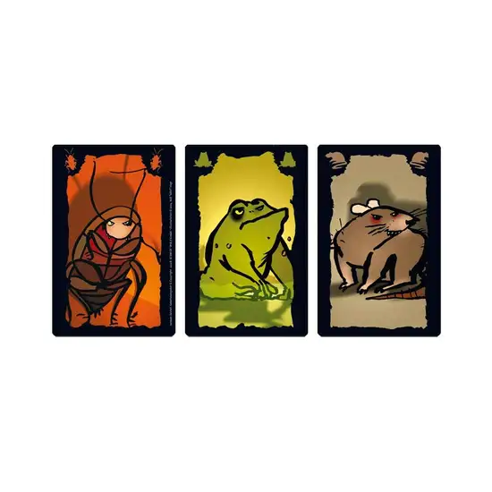 The deck includes 64 cards, with eight copies of eight types of critters. To set up the game, shuffle the deck and deal the cards out to players.