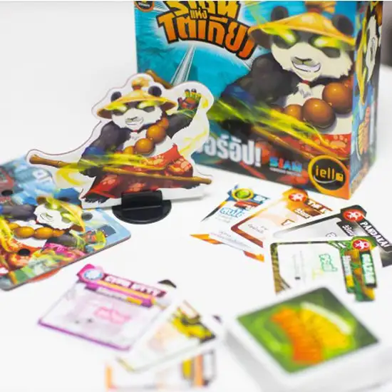 With King of Tokyo: Power Up! – an expansion for the King of Tokyo base game – Included is the new monster Pandakai, a giant panda bear. After choosing a monster, each player takes the eight Evolution cards associated with that monster, shuffles those cards, and creates a personal deck. At the end of a player’s turn, if she has three hearts, she draws one Evolution card and adds it to her hand; this is possible even in Tokyo (when hearts are normally useless) and even if the hearts are used for some other action, such as healing.