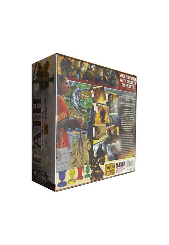 Path of Light and Shadow is a massive empire-building experience, combining area control, deck management, and civilization customization. As players vie for control of The Realms, they must enlist and promote supporters, outfit their burgeoning empire with powerful technologies, align with powerful leaders, and lay siege to rival exiles after the throne. Above all else, each player must decide what type of leader they will become, cruel or merciful. But choose wisely, for each path has its rewards and perils.