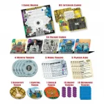 You score points by producing goods in your industrial buildings, exposing opponents’ fake buildings with spies, constructing government and cultural buildings, and passing off fake buildings as real ones. The player with the most points at the end of the game wins!