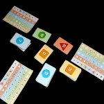 In the game, you have your own player sheet, which shows four columns of symbols (square, circle, triangle, hexagon), with eight symbols in each column. To set up the game, adjust the deck so that it contains twenty cards per player, with the cards being chosen at random. The full deck contains one hundred cards, with 25 cards for each symbol numbered 1-25.