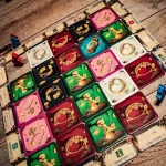 In Robin of Locksley, you aim to collect loot tiles with your Robin and sell loot collections of the same color. Move forward on the racing track surrounding the 5×5 loot tiles by spending earned gold. Every field will give you a task to gather fame: You may fulfill the task, or you may spend one gold coin to pass it. Whoever first circles the racing track twice wins.