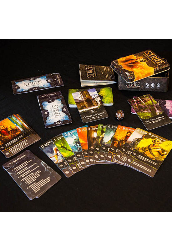 Strife, a two-player strategy card game that plays in around an hour, is a game where you always know your opponent’s options. Aside from mastering the unique combo-creating gameplay of your champions, figuring out how to outmaneuver your opponent is where the true challenge lies.
