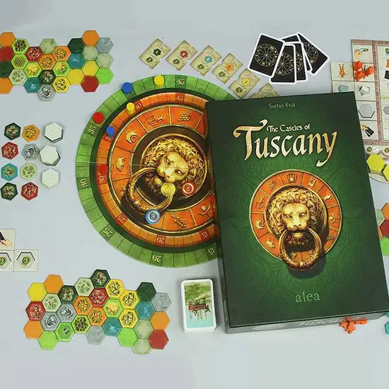 The beautiful Tuscany region, in the 15th century, is the home of the Italian Renaissance. As influential princes, the players make creative decisions to build their region into a flourishing domain.