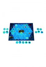 The small island of Kuchinoshima has been hit by a terrible storm, leaving the village with only a single fishing boat. Each hoping to prove themselves the village’s best fisherman, 2-4 players take turns moving the boat marker around the island, collecting any fish tiles they land upon. At the end of the day, the player with the best haul wins, but there’s a twist – with 3 or 4 players, each player’s score is added to the player to their right’s score before determining the winner!