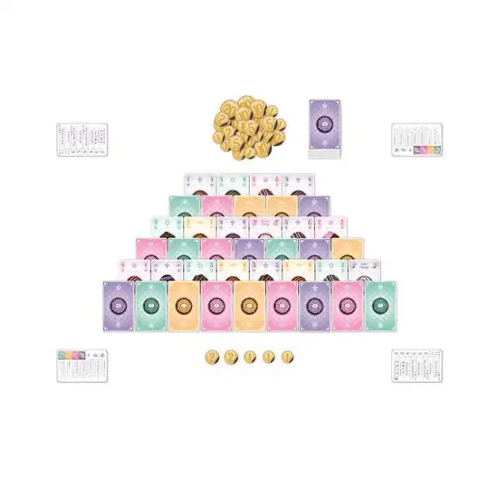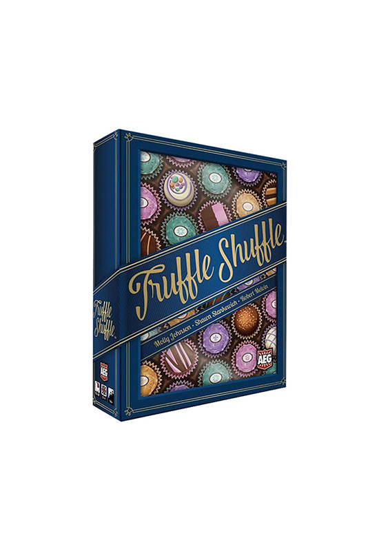 In the quick-playing, card-drafting game Truffle Shuffle, players take turns selecting truffles from a shared box of overlapping cards in order to make their own arrangements of chocolates to sell. Players can complete a variety of sets, using special modifiers and action cards. With so many different chocolate truffles to unwrap and different ways to combine them, every game of Truffle Shuffle is unique!