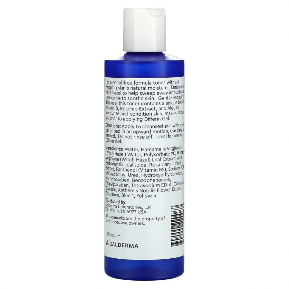 Эта формула без спирта тонизирует, не теряя естественной влажности кожи. Обогащен гамамелисом, который смывает загрязнения, и ромашкой, успокаивающей кожу. Достаточно нежный для ежедневного использования, этот тоник содержит уникальную смесь витамина B, экстракта шиповника и алоэ для увлажнения и кондиционирования кожи, что делает его идеальным для использования перед нанесением геля Differin.