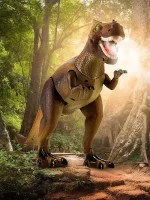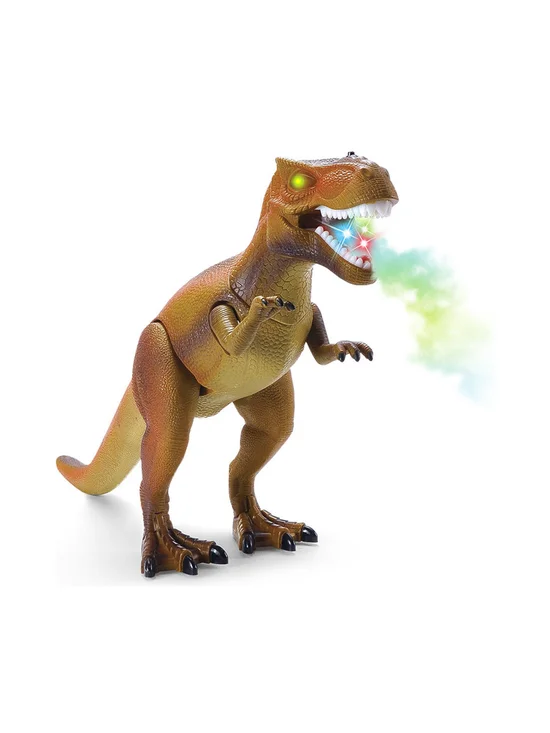 Dinosaur Toy Realistic Walking Tyrannosaurus Rex Multifunction with Smoke Color Brown from the brand DINO MIGHT. T-Rex Multifunction with remote control and smoke, Jurrasic World Dinosaur Toy. The Prehistoric World of dinosaurs comes to life with real movements. He walks, waves his arms, roars fiercely, flashes his light-up eyes, and shakes his head from side to side. Tyrannosaurus Rex is multifunctional has movable jaws opens and closes its mouth with LED lights to roar makes 8 different roaring sounds and is featured with a water vapor spray function. The remote control presents multiple functions, forward, backward, roars, sprays, lights up multiple sounds and songs. Prefect Dinosaur Toy for Christmas Birthday Gift.
