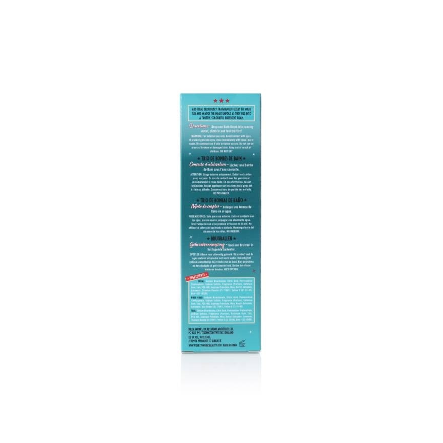 Dirty Works And On That Bombshell Bath Bomb Trio that pack a pamper punch dipped in ultra fine glitter, each fizzer will transform any boring bath time routine into a luxurious spa session from the comfort of your bathroom. Drop one under running water and watch it leave behind a colourful, sparkly bath with frothy foam. Infused with our Signature Scent, a fruity, fresh and fabulous blend of cassis, bergamot and sandalwood that will leave you feeling and smelling divine, every single time. Is a bath ever complete without swirls of froth and iridescent foam? We think not. Part of our Signature bath and body range, which is all about having some good clean fun. Fragranced with the iconic fresh, fruity and floral Dirty Works Signature Scent for the ultimate bathroom escapism. Luxurious formulas developed with dry skin in mind, the range combines nourishing butters and oils for soft, smooth skin. Signature Scent fragrance notes Top Cassis, Bergamot, Peach. Middle Rose, Jasmine, Neroli, Freesia. Base Vanilla, Patchouli, Sandalwood, Tonka Bean.