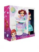 Disney Princess Baby Ariel High Chair doll baby version of the famous Disney cartoon The Little Mermaid. With a cute costume suitable for the character. The doll looks soft. can be hugged You can enjoy dolls based on your favorite cartoons. There are many play accessories to help foster creativity and develop children’s thinking. Like taking care of the little princess Ariel. This toy will be a great gift choice for kids who love imagination and creative activities with friends.