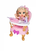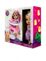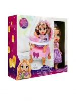 Disney Princess Baby Rapunzel High Chair doll baby version of the famous Disney cartoon Tangled or Rapunzel, the long-haired princess. With a cute costume suitable for the character. The doll looks soft. can be hugged You can enjoy dolls based on your favorite cartoons. There are many play accessories to help foster creativity and develop children’s thinking. Like taking care of the little princess Rapunzel. This toy will be a great gift choice for kids who love imagination and creative activities with friends.