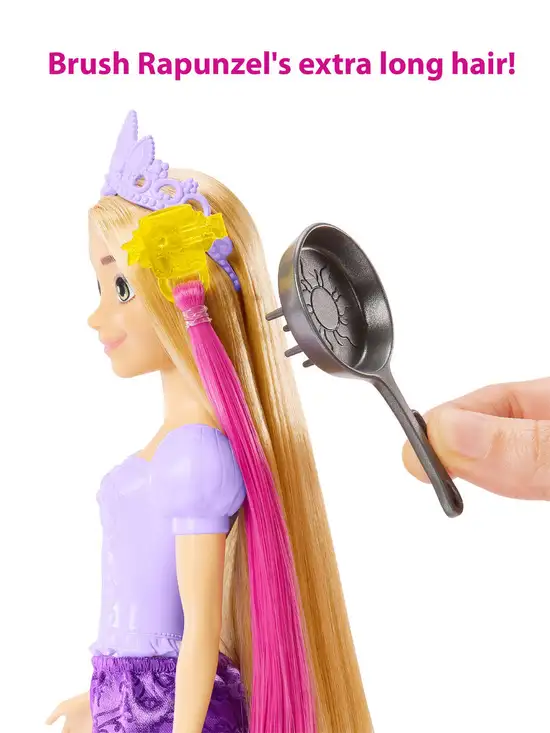 DISNEY This Rapunzel doll, inspired by the vibrant and creative princess from Disney’s Tangled, features extra long hair and so many ways to style it! The set includes 2 color-change hair extensions and lots of hair styling accessories for all the fairy tale looks kids can imagine.