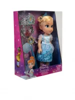 Cinderella has shimmery glitter eyes and her signature long flowing hair to style. This gorgeous Princess is approximately 14 inches tall, including doll, removable dress, shoes, and Tiara. Fun play doll of kids favourite Disney character. Encourages imaginitive play. Came with original blue gown, Cinderella shines bright and radiates sweetness and kindness to whoever she meets.