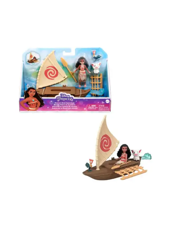 Favorite Disney movie moments are shown with Moana and her boat, in a charming small scale! Small doll Moana comes with a floating boat and 2 character friend figures from the movie. Kids can launch Heihei from the boat with a fun wave featurejust like in movie! Fans will love re-creating their favorite scenes or making up their own Moana adventures.