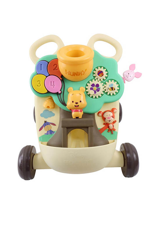 A push walker designed to enhance cognitive and motor skills through ball shooting and counting with illuminated number displays and musical sounds. Recommended Age: 9-18 months and above.