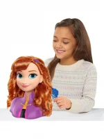 Disney Frozen Anna Basic Hair Styling Head Toy from DISNEY KIDDO brand comes with 14 pieces of accessories, suitable for the ages 3+ players. The Disney Frozen Anna Styling Head comes with 13 accessories for brushing, styling and braiding. Your little one will love using the adorable hair clips to style and decorate Anna shiny, flowing locks. Kids can even use the hair clips in their own hair for even more fashion fun!