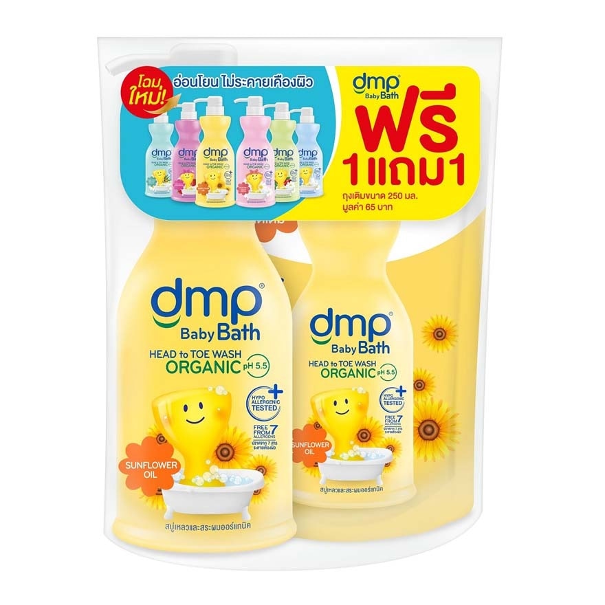DMP Organic PH 5.5 Baby Bath Sunflower Oil,- Hair & Body Organic pH 5.5 liquid baby soap for baby skin and intangible hair- Organic Rose hip & Chamomile to protect and nourish skin with Omega-6, Vitamin A and non-irritation- pH-Balanced 5.5 to keep natural skin moisture and protect skin- Hypoallergenic & Eye Irritation Tested