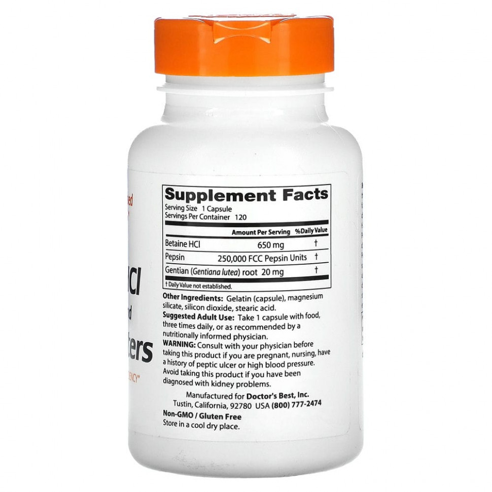 Горькая настойка из бетаина гидрохлорида, пепсина и горечавки содержит три фактора питания, которые выполняют взаимодополняющие функции, призванные поддерживать пищеварение. Пищевая добавка с бетаином гидрохлоридом может улучшить работу желудка. Пепсин — это фермент, вырабатываемый организмом для переваривания белковой пищи в желудке. Пепсин действует вместе с желудочной кислотой, обеспечивая переваривание белков. Горечавка — это трава, которая способствует пищеварению и тонизирует пищеварительный тракт. Ее горечь стимулирует выработку организмом пищеварительных ферментов.