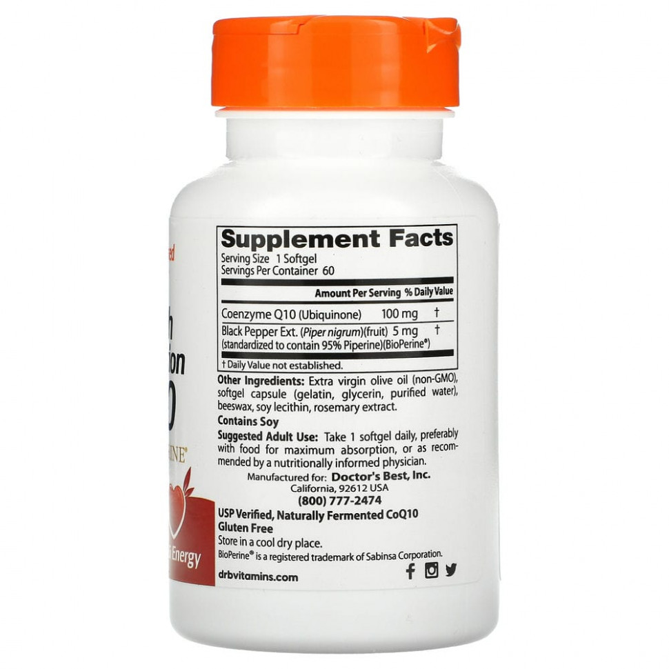 Коэнзим Q10 с высокой степенью всасываемости от Doctor’s Best содержит чистый коэнзим Q10 (убихинон) и BioPerine®. Коэнзим Q10 поддерживает функцию сердца и жизненно важен для производства аденозинтрифосфата (АТФ), особенно в сердце. Стресс, свободные радикалы, статины и старение могут отрицательно влиять на уровень коэнзима Q10. Коэнзим Q10 очень важен для производства энергии, сокращения мышц и синтеза протеина. Исследования показали, что BioPerine® увеличивает абсорбцию коэнзима Q10.