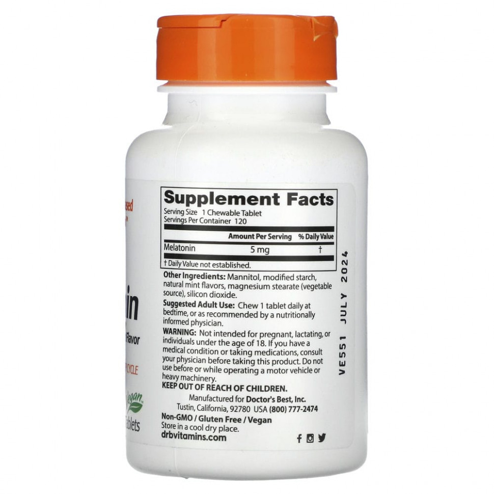 Мелатонин от Doctor’s Best содержит мелатонин, естественным образом выделяемое в организме вещество, помогающее регулировать биоритмы сна и бодрствования, часто называемые «внутренними часами организма», которые сообщают нашему организму, когда нужно спать, просыпаться, есть — регулирующее многие физиологические процессы в организме и помогающее мозгу нормально функционировать. Определенные факторы могут влиять на биоритм, например, люди могут корректировать циклы сна и бодрствования с учетом ежедневного рабочего графика или смены часовых поясов.