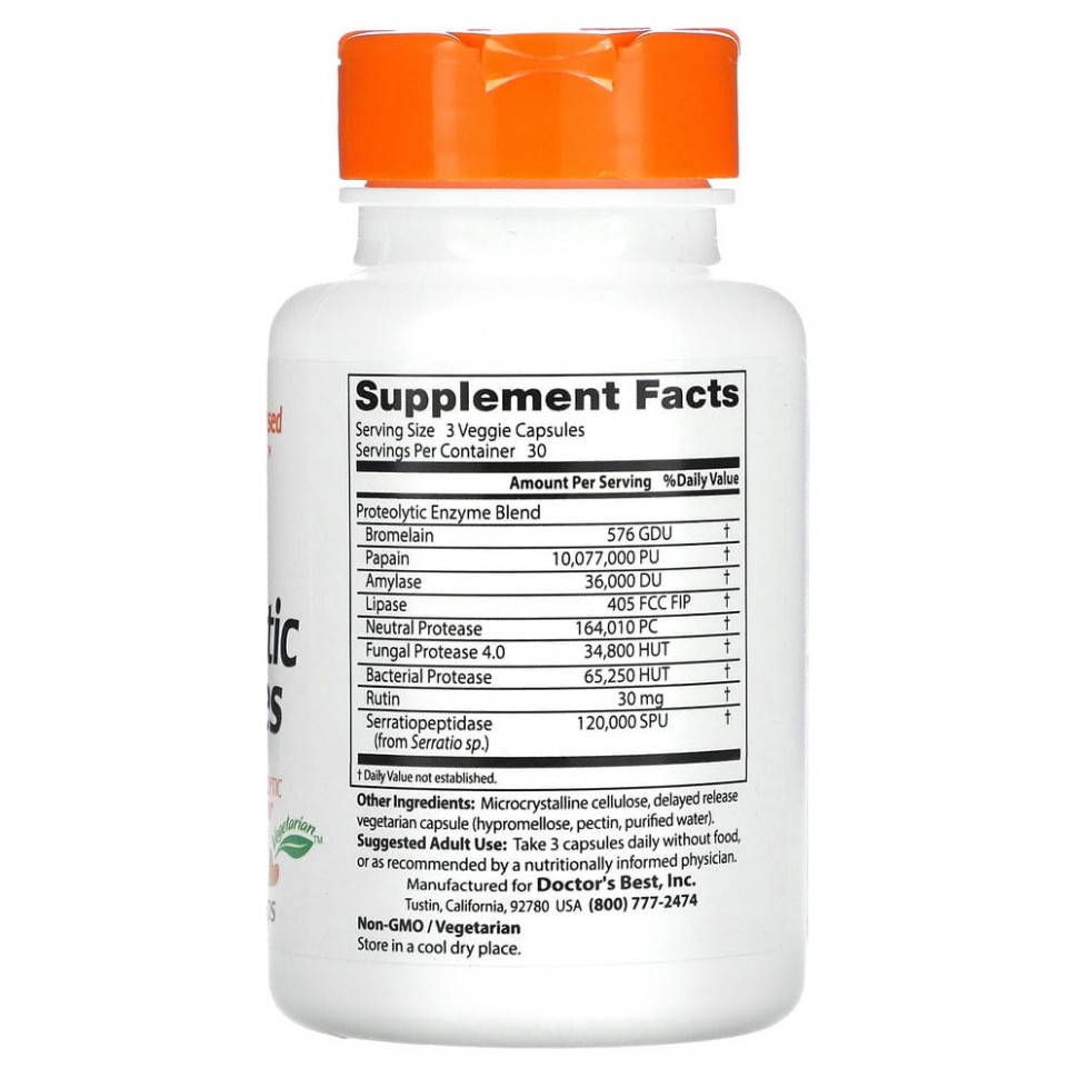 Протеолитические ферменты Doctor’s Best — это эффективная формула, содержащая широкий спектр вегетарианских протеолитических ферментов. Протеолитические ферменты способствуют усвоению и расщеплению белков на их аминокислотные компоненты в организме. Добавки с протеолитическими ферментами облегчают химические реакции, которые поддерживают нормальные метаболические функции во всем организме. Вегетарианские капсулы с отсроченным высвобождением помогают активным ингредиентам попадать в кишечник для правильного усвоения и поддержки общего здоровья иммунной системы.