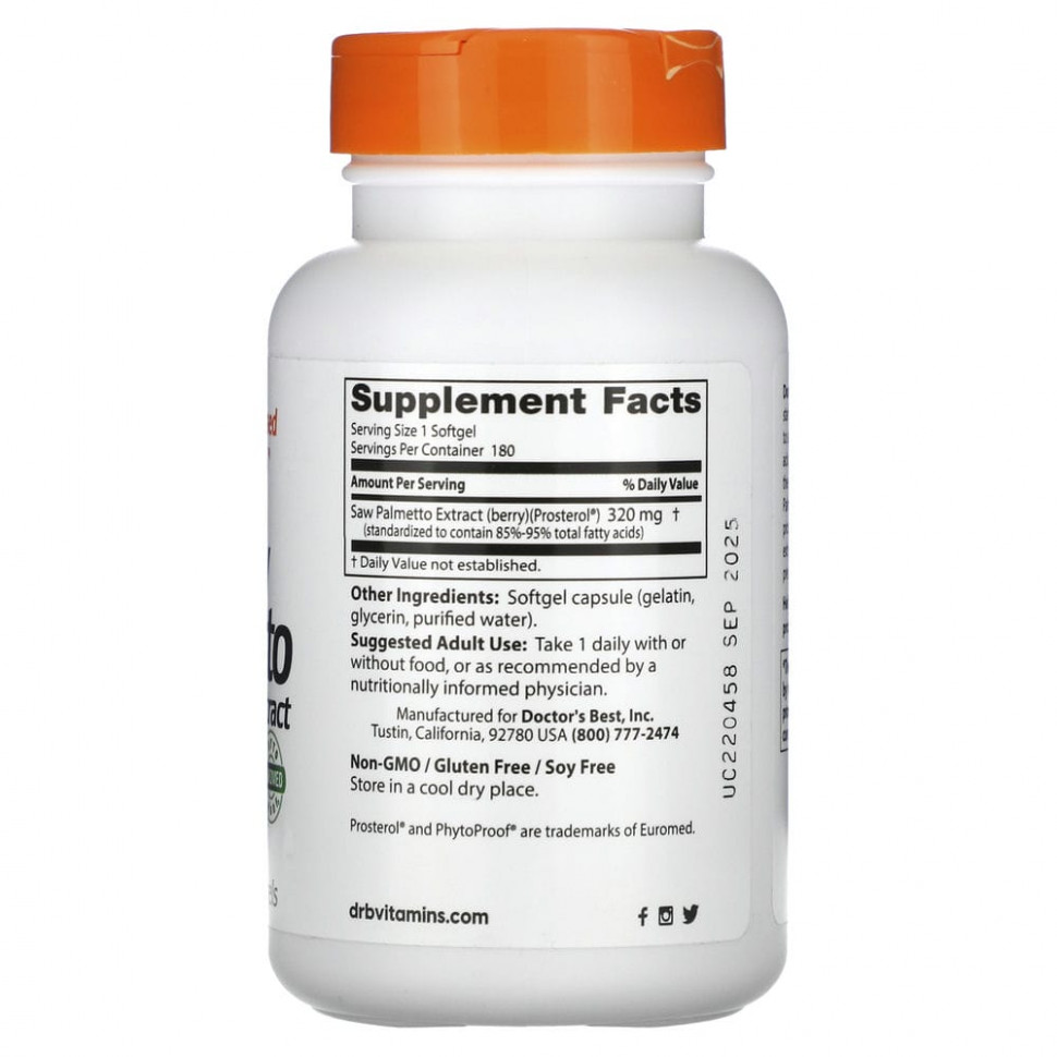 В состав добавки «Сереноя» от Doctor’s Best входит чистый стандартизованный экстракт серенои, гарантированно содержащий от 85% до 95% жирных кислот серенои и полезных растительных стеролов, которые являются ключевыми активными ингредиентами трав. Сейчас широко изучаются свойства серенои, связанные с мочевыделительной функцией и простатой. Метод экстракции, используемый для извлечения веществ из серенои, предотвращает образование остатков растворителя.