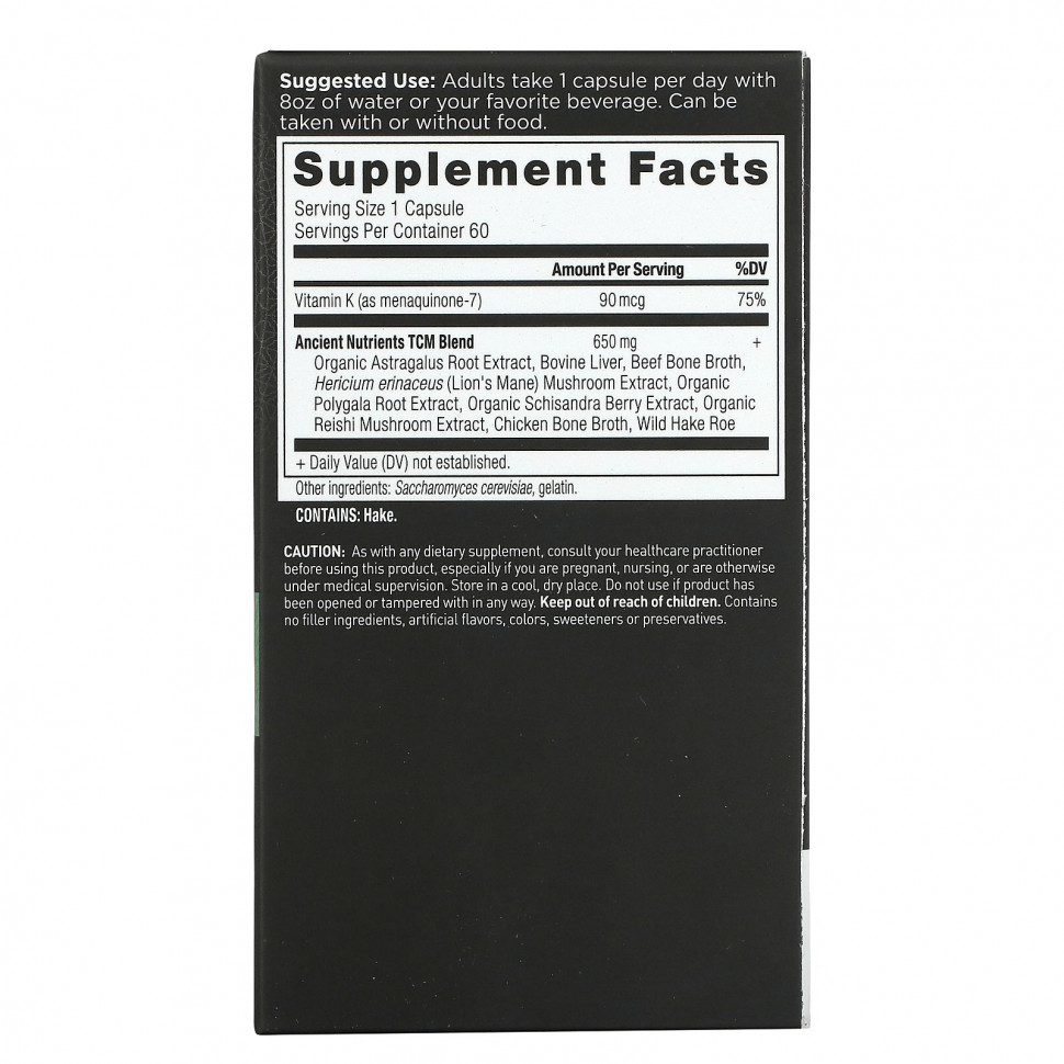 Формула витамина K2 Ancient Nutrients, созданная с использованием традиционного китайского метода суперпитания, сочетает в себе: