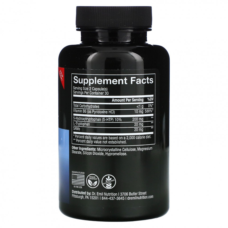 Улучшенная формула 5-HTP: Добавление синтезаторов серотонина, SAMe и L-триптофана способствует превращению 5-HTP в серотонин, повышая эффективность формулы 5-HTP Plus.