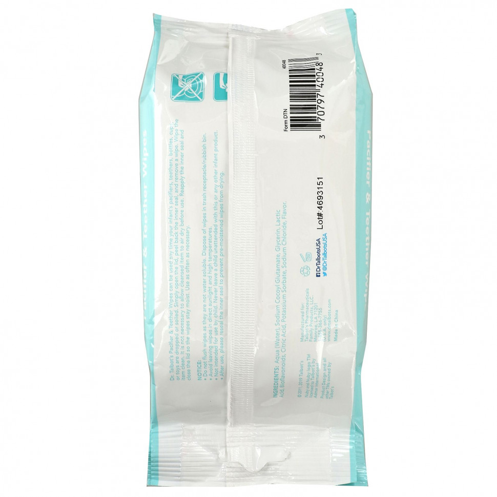 Доктор Соска Тальбота & Салфетки для прорезывания зубов можно использовать в любое время, когда пустышки, прорезыватели, бутылочки, чашки или игрушки падают или загрязняются. Просто откройте крышку, снимите внутреннюю пленку и удалите салфетку. Протрите предмет начисто. Перед использованием очищенное средство не обязательно сушить на воздухе. Установите внутреннюю пленку и закройте крышку, чтобы салфетки оставались влажными. Используйте по мере необходимости.